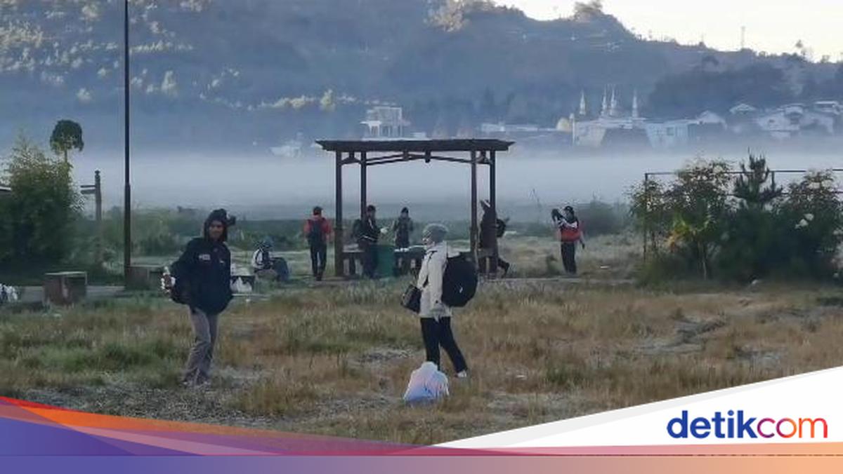 Fenomena embun es di kompleks Candi Arjuna, Dieng, Banjarnegara, Jawa Tengah, Senin (17/7/2023) pagi.Fenomena embun es di kompleks Candi Arjuna, Dieng, Banjarnegara, Jawa Tengah Foto: dok. Dhimas F