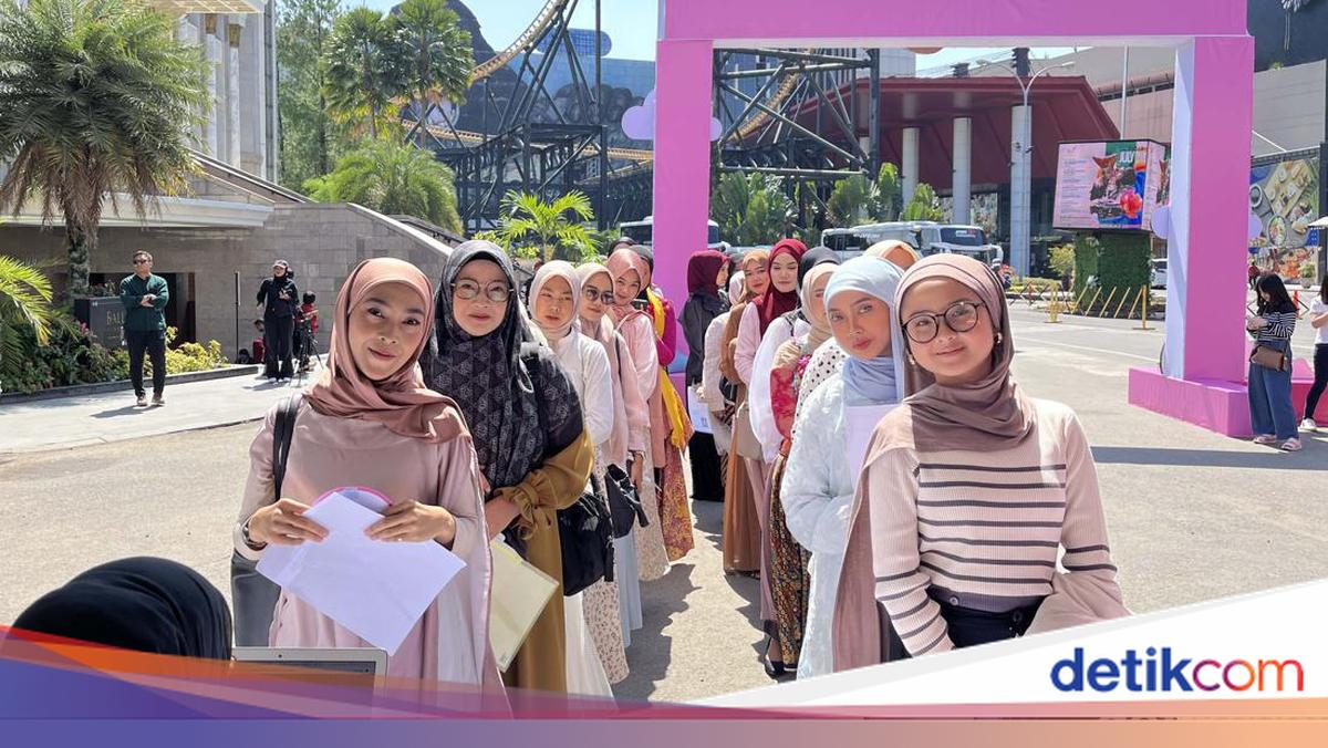 Hijabers Bandung yang ingin ikut keramas gratis dari Emeron di Parkir Barat Trans Studio Mall, Bandung, Jawa Barat, Sabtu (20/7/2024) mulai pukul 10.00 WIB. Foto: Gresnia/Wolipop.
