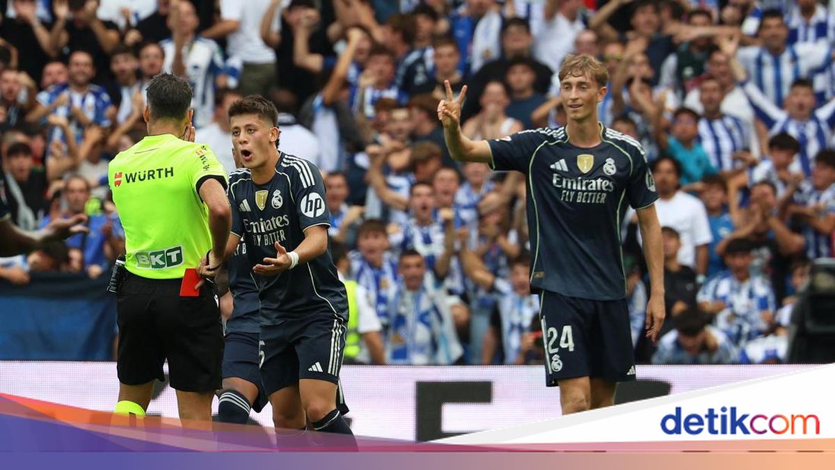 Kartu merah itu membuat dominasi Madrid memudar, tapi masih berhasil bikin gol kedua lewat Arda Guler jelang turun minum. Di babak kedua, Sociedad lebih intens menekan dan menipiskan selisih melalui penalti Mikel Oyarzabal.