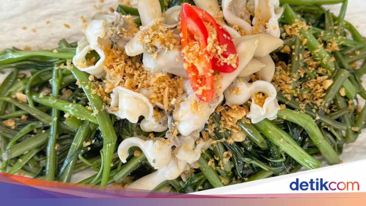 Ditumis dengan sedikit cabe dan bumbu bawang sehingga rasanya pedas gurih. Tambahan cumi-cumi segar dan sedikit terasi memperkuat rasa gurihnya. Tumisan kangkung yang spesial ini bisa untuk menu makan siang enak.